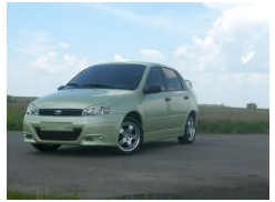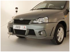 Передний бампер Софи на ВАЗ 1118 Калина. Имеет небольшое занижение клиренса на 2 см.
