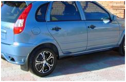 Накладки на пороги Софи для ВАЗ 1118 визуально увеличивают боковую часть Калины.