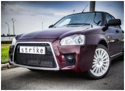 Описание: Передний бампер Приора "STRIKE". Материал: пластик АБС.