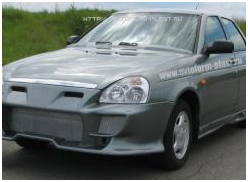 Описание: Передний бампер на Приору "Консул" с сеткой. Материал: стекловолокно.