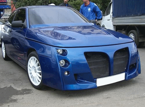 Передний бампер AVR на ВАЗ 2112, 21123 купе с большими воздухозаборниками придает автомобилю агрессивный внешний облик. Материал: стекловолокно.